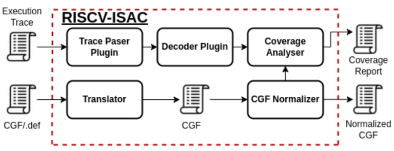 Recently, a new feature has been introduced in RISC-V ISAC. You may have noticed curly brace {} around the instruction names defined under the mnemonics label. This feature is meant to reduce the number of lines for defining a covergroup, therefore enhancing the readability. The complete RISC-V ISAC flow is given below: